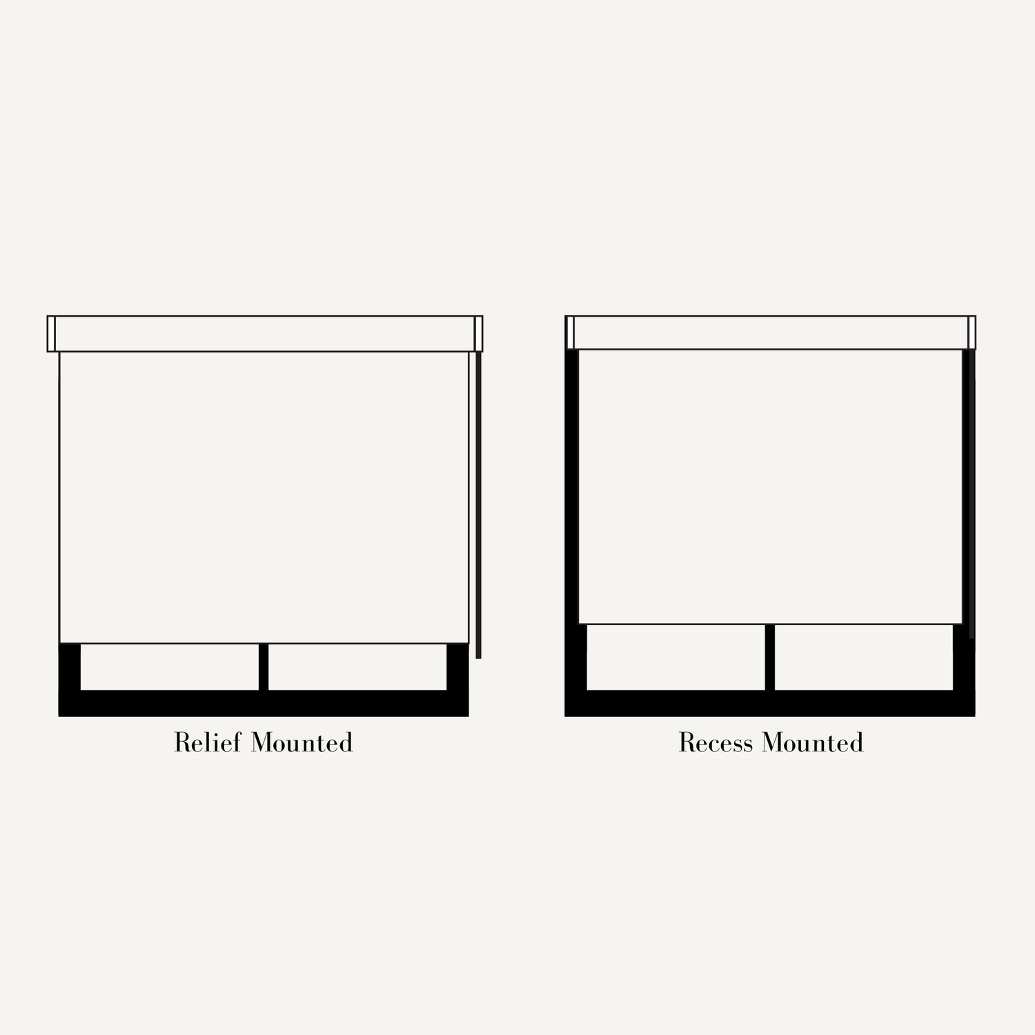 Relief: Mounted on the outside of the frame to cover the full window area. Best for maximising light control and adding visual presence.