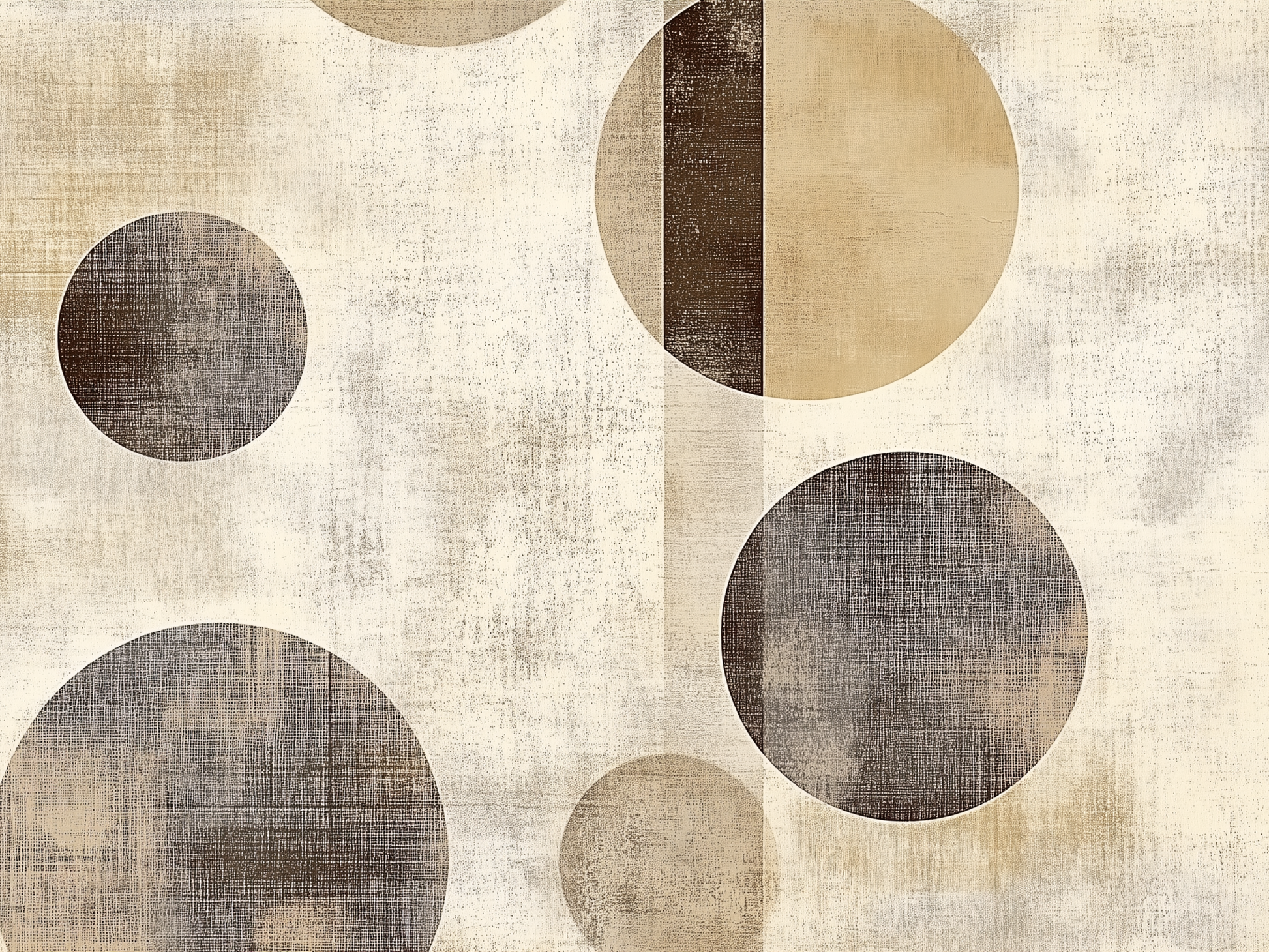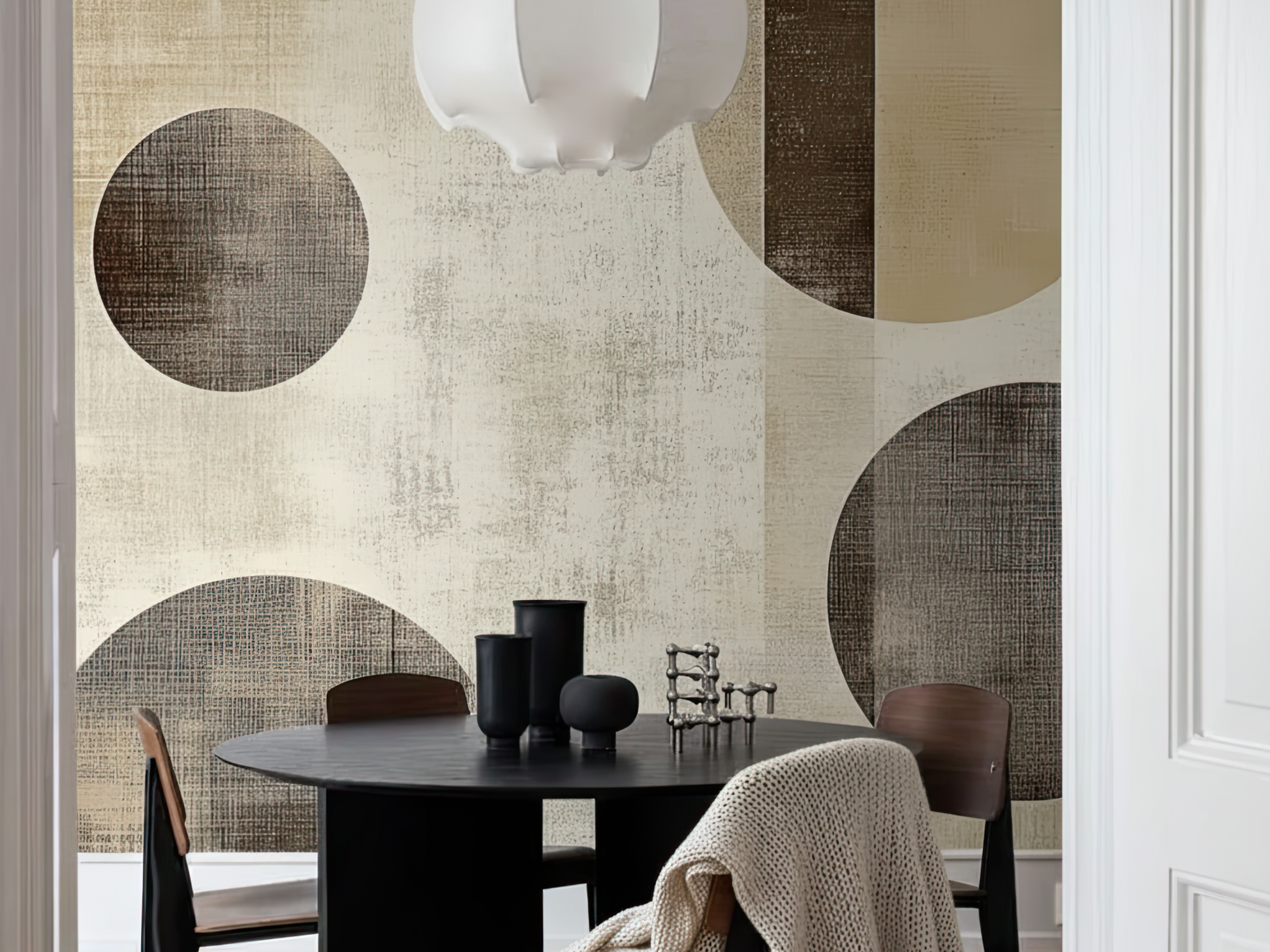 Inspired by the steady rhythm of time and the simplicity of circular harmony, this Japandi wallpaper layers soft geometry with worn textures and warm neutrals. A peaceful interplay of stillness and structure. A space to align. A space to be.