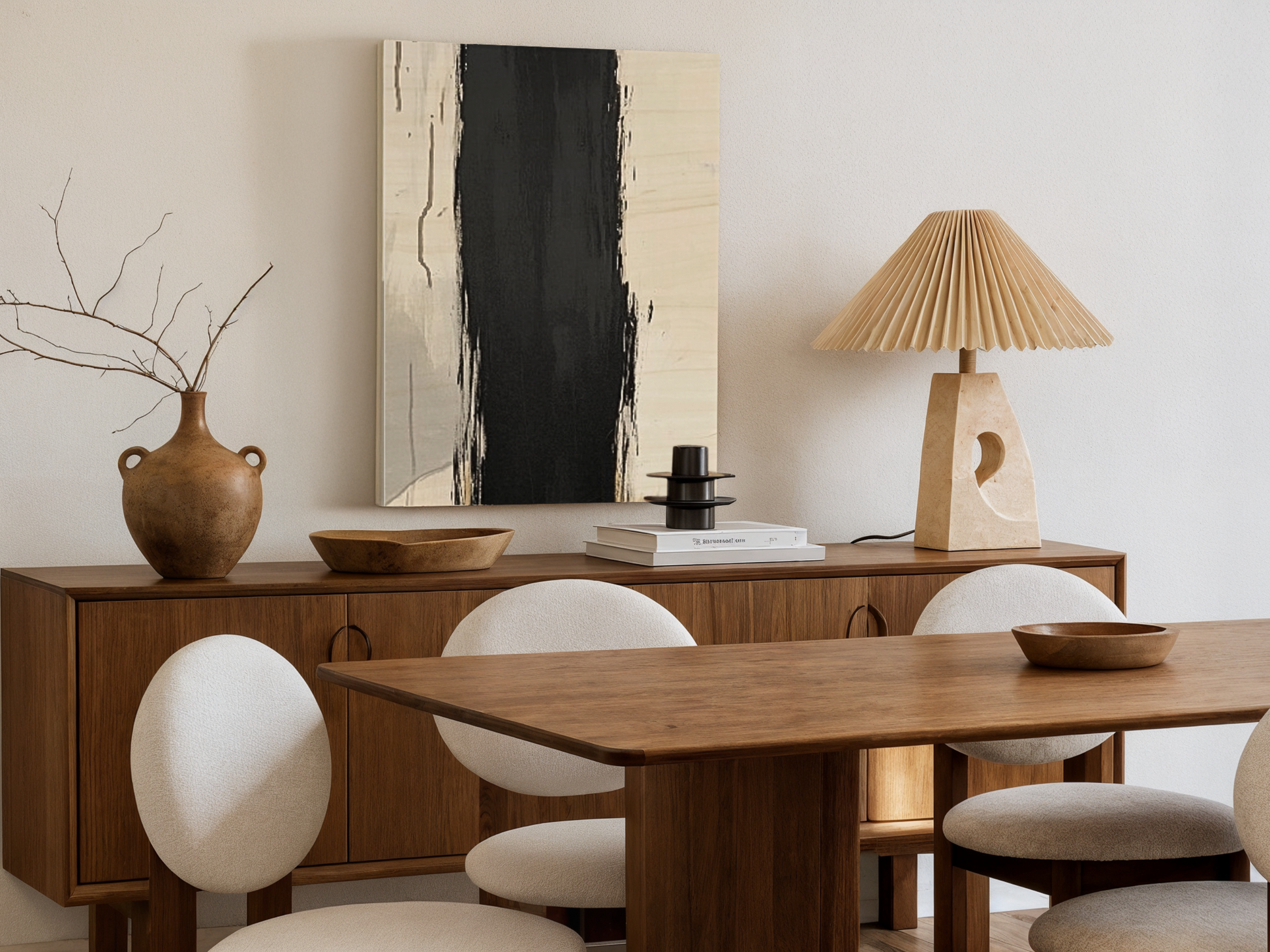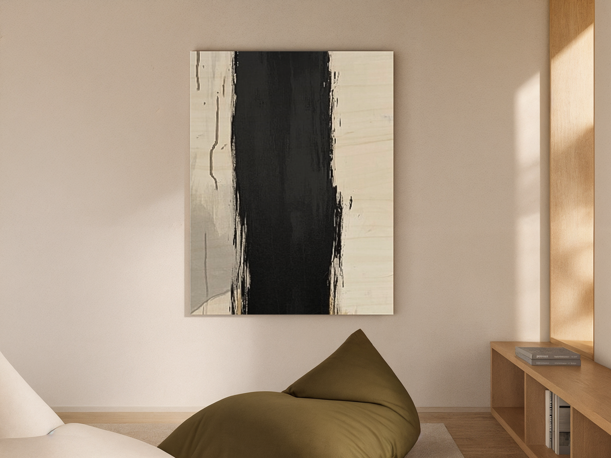 Midnight Divide is a striking wooden wall art piece that captures the dramatic contrast between light and dark, symbolizing the powerful boundary between opposing forces. The design features a bold, vertical swath of deep black that cuts through a lighter background of cream and soft gray tones, creating a visually arresting composition that draws the eye to the stark contrast at the heart of the piece. The natural grain of the birch wood subtly emerges through the design, grounding the piece in its organic origins and reinforcing its connection to the natural world.