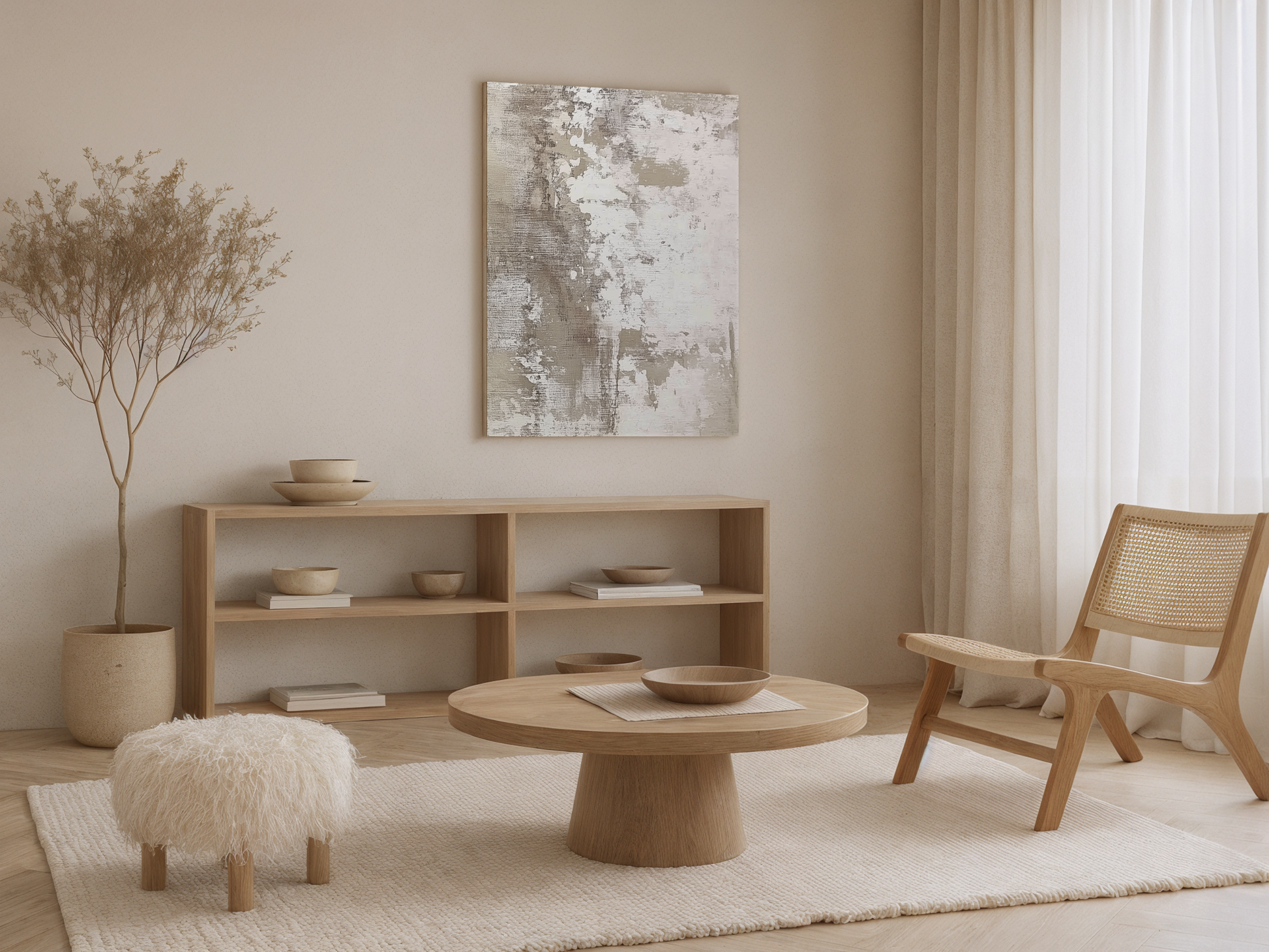 Whispered Relics is a captivating wooden wall art piece that evokes the quiet beauty of time-worn surfaces and the stories they hold. The design features a textured, weathered appearance with layered tones of cream, beige, and soft taupe, creating an abstract composition that suggests the gentle erosion of time. This piece embodies the idea of relics from the past, where each mark and imperfection whispers tales of history and memory. The natural grain of the birch wood subtly emerges through the design, grounding the piece in its organic origins and reinforcing its connection to the natural world.