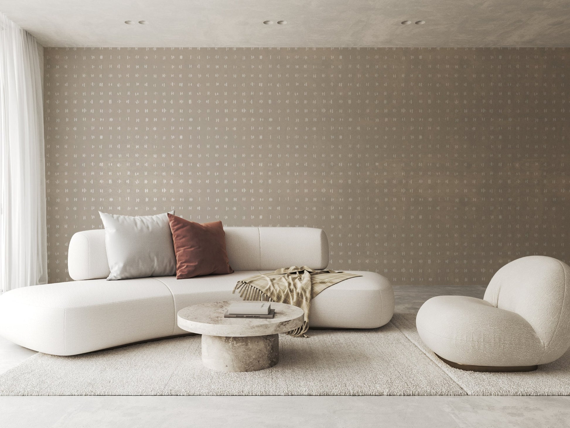 Inspired by the gentle repetition of breath and the stillness between sounds, Zen Dot Harmony celebrates the subtle elegance of imperfection. Each hand-drawn mark echoes wabi-sabi calm—imperfect yet intentional, quiet yet full of character. A Japandi wallpaper where simplicity creates serenity. A space to breathe, a space to be.