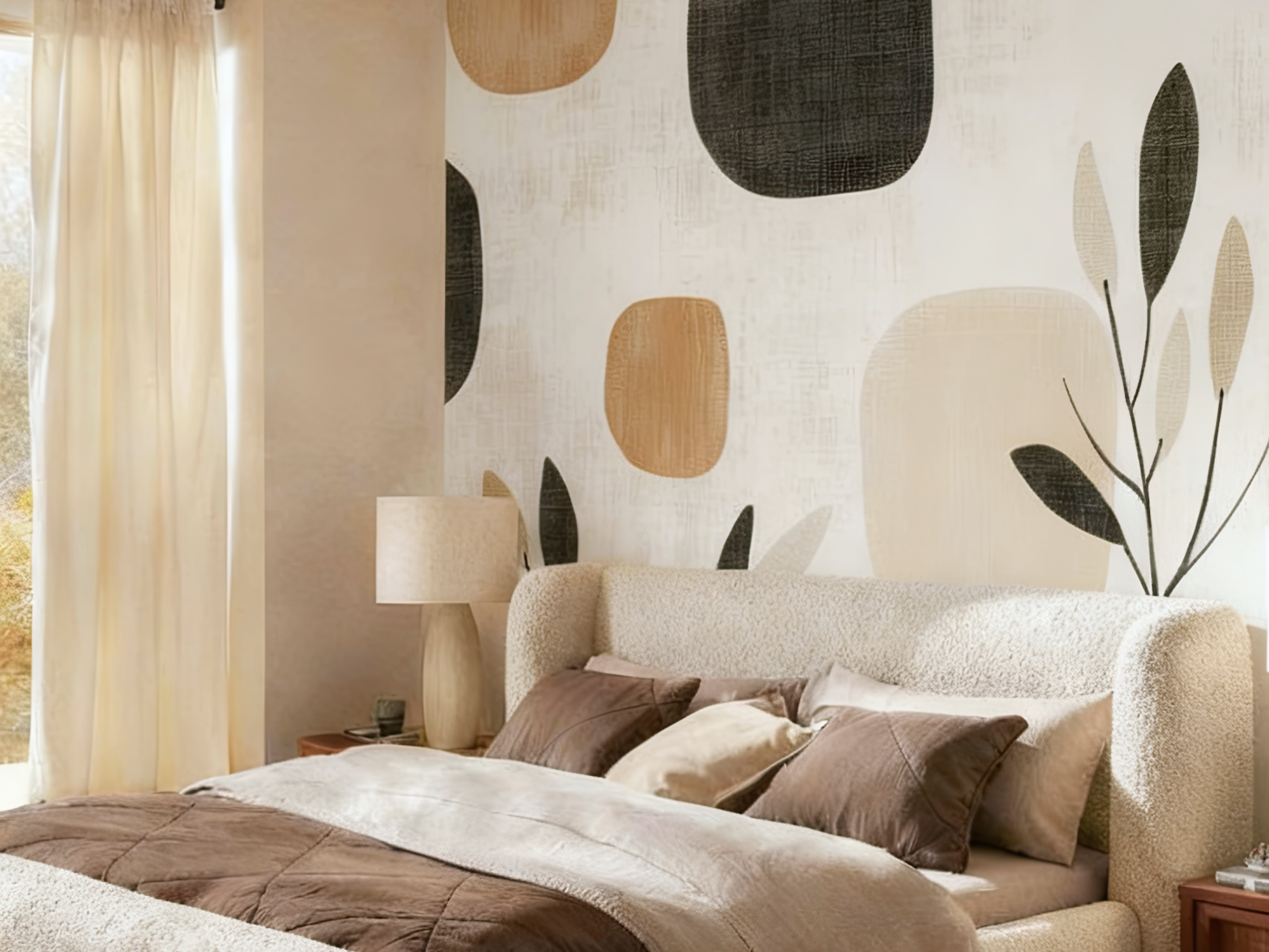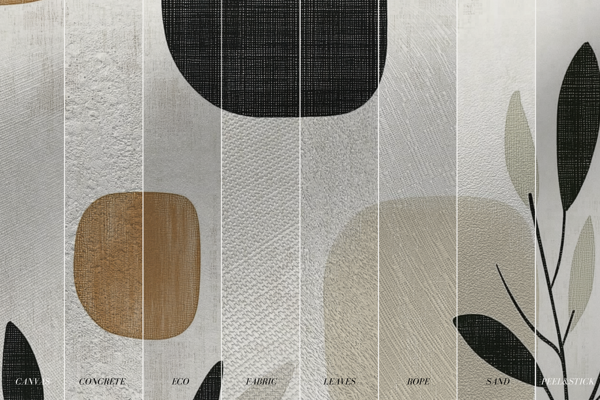 Inspired by the soft silhouettes of leaves and the gentle rhythm of natural growth, this Japandi wallpaper blends earthy tones with subtle form. A delicate balance of moisture, movement, and calm. A space to refresh. A space to be.