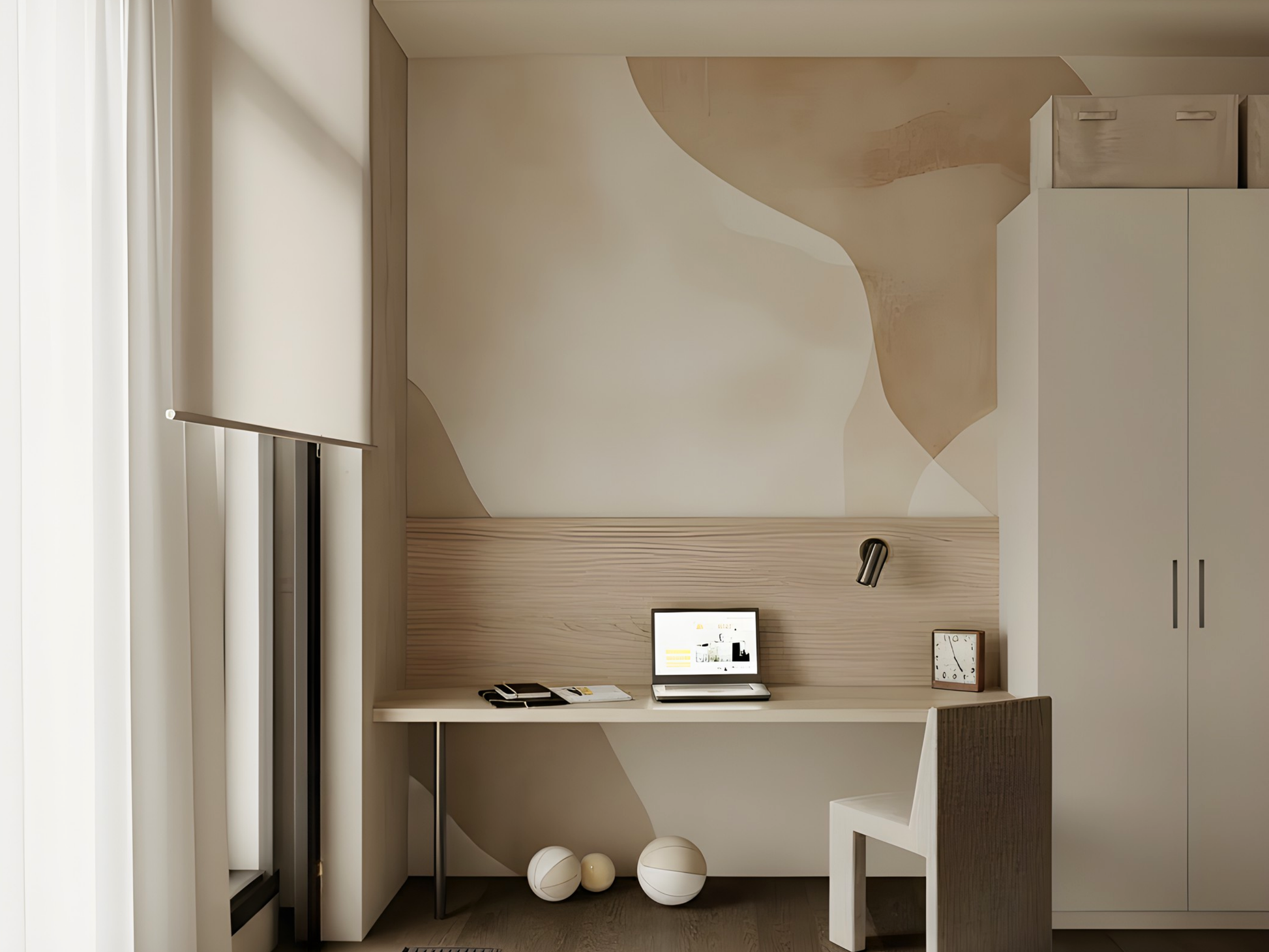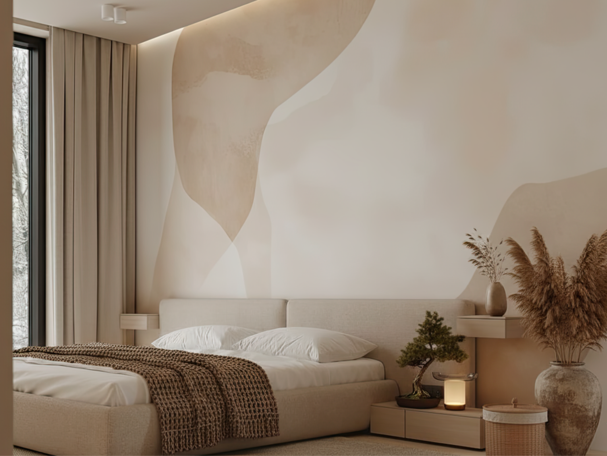 Inspired by soft mountain fog dissolving into silence, Kiri Fade captures the gentle diffusion of light and shadow. This Japandi wallpaper evokes the serenity of drifting clouds and quiet transitions—blending form with feeling in hushed, natural tones. A space to breathe, a space to be.
