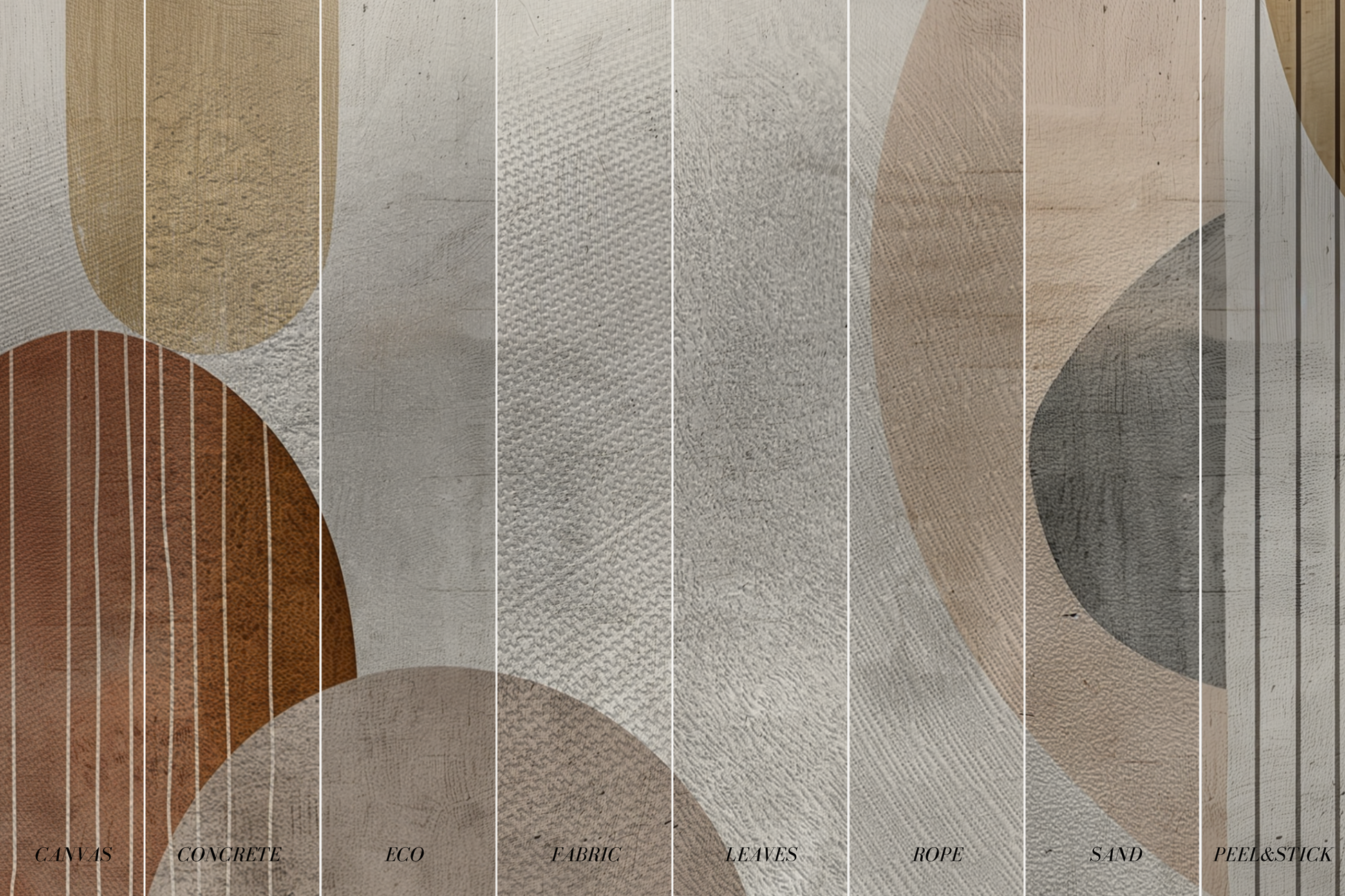 Inspired by warm morning light and gentle material contrasts, this Japandi wallpaper celebrates the interplay between balance and softness. Layered tones and curved forms echo moments of calm clarity—a design that feels grounded, yet quietly radiant. A space to breathe, a space to be.