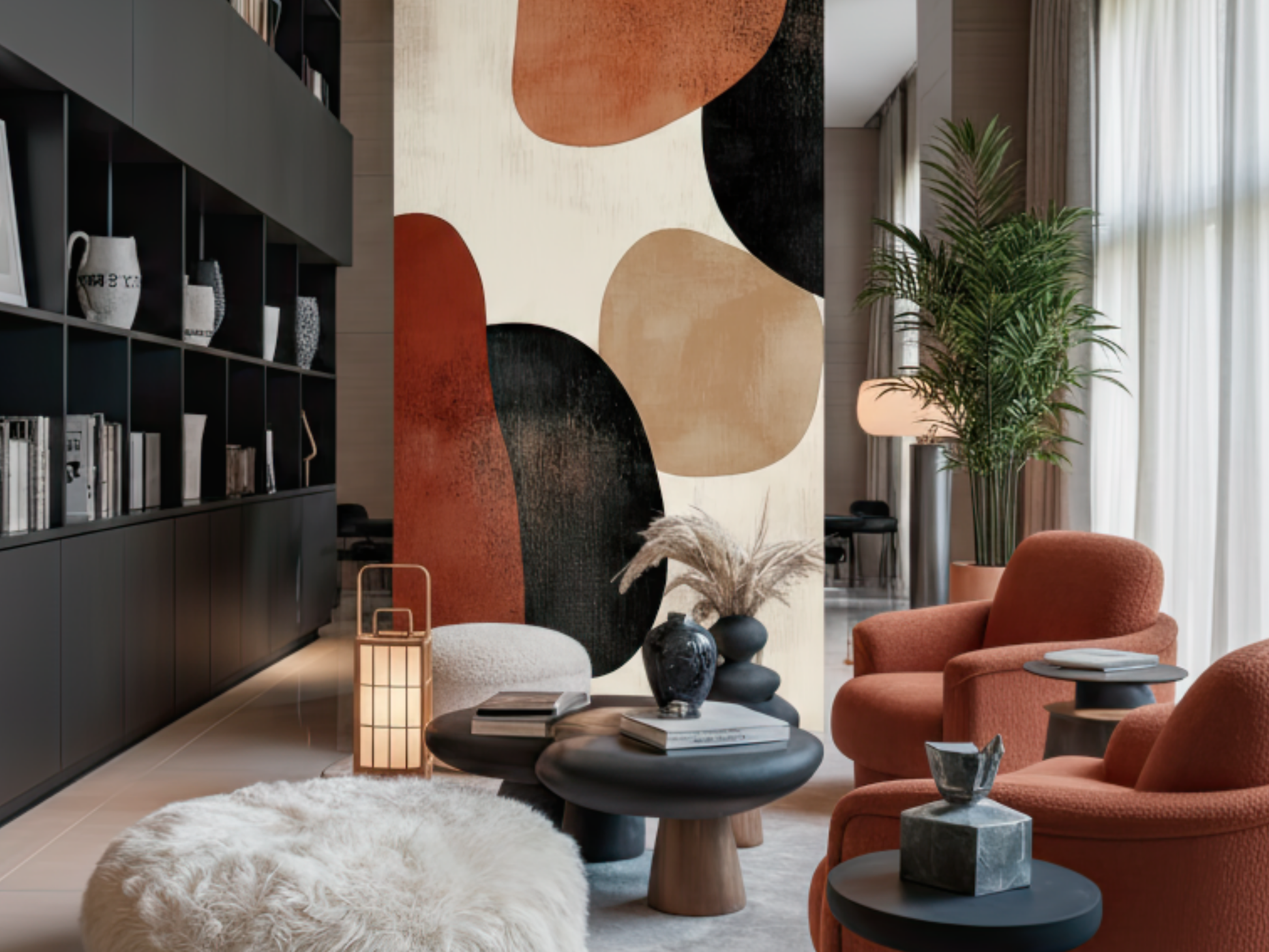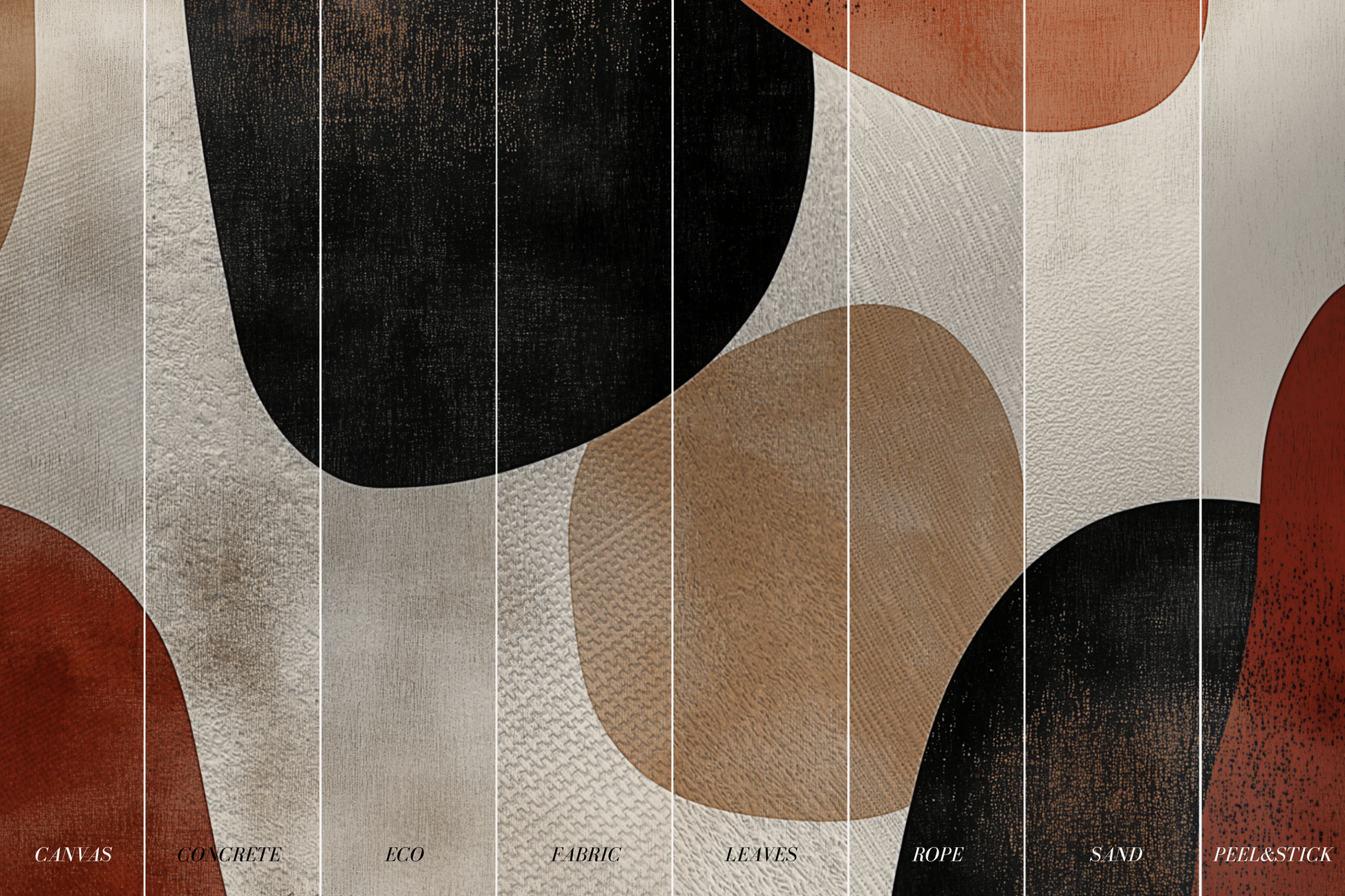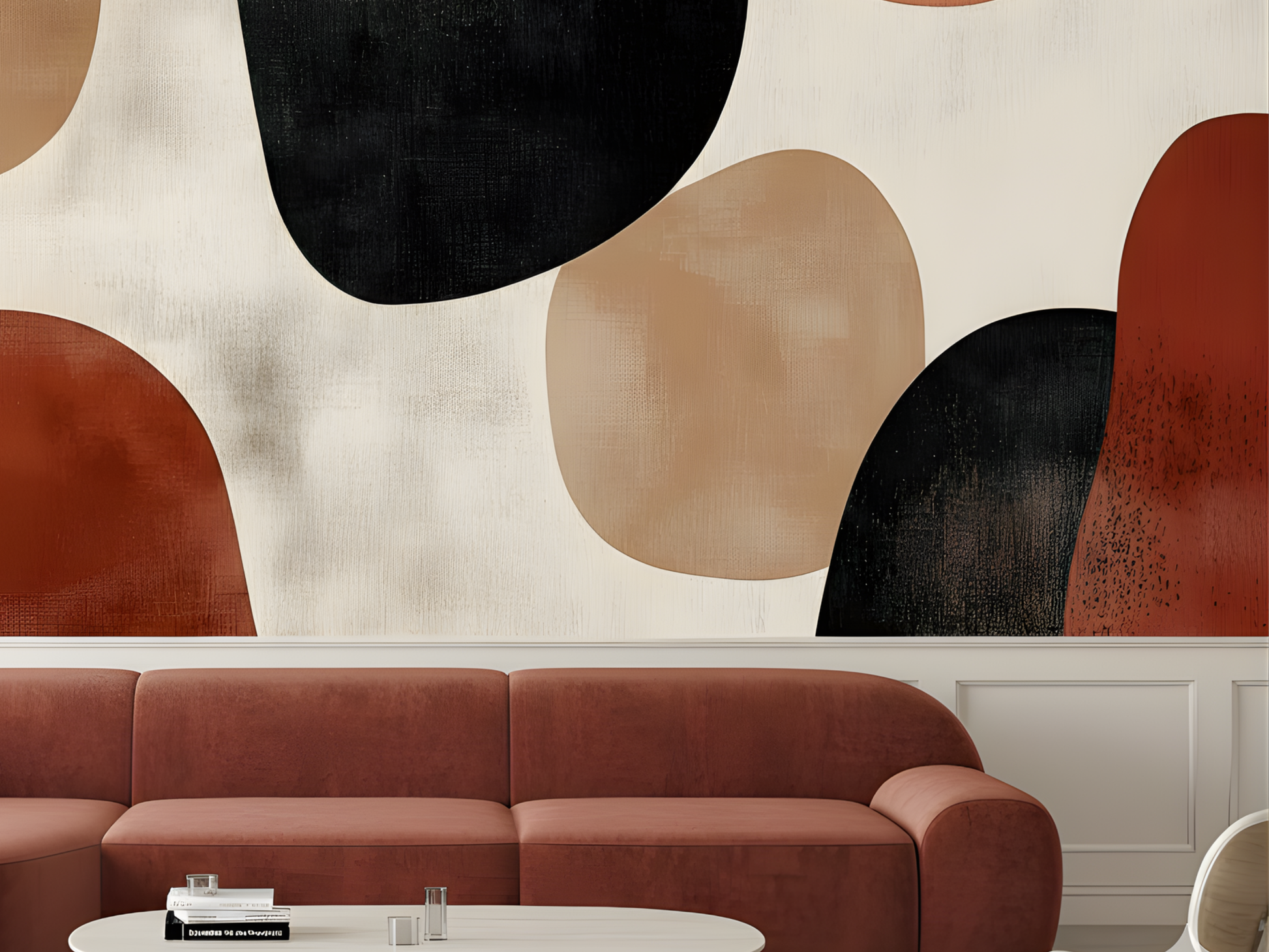 Inspired by sun-warmed stones and the tactile richness of natural earth, this Japandi wallpaper blends organic shapes and grounded hues in quiet harmony. A warm, elemental composition that connects space to nature. A space to root. A space to be.
