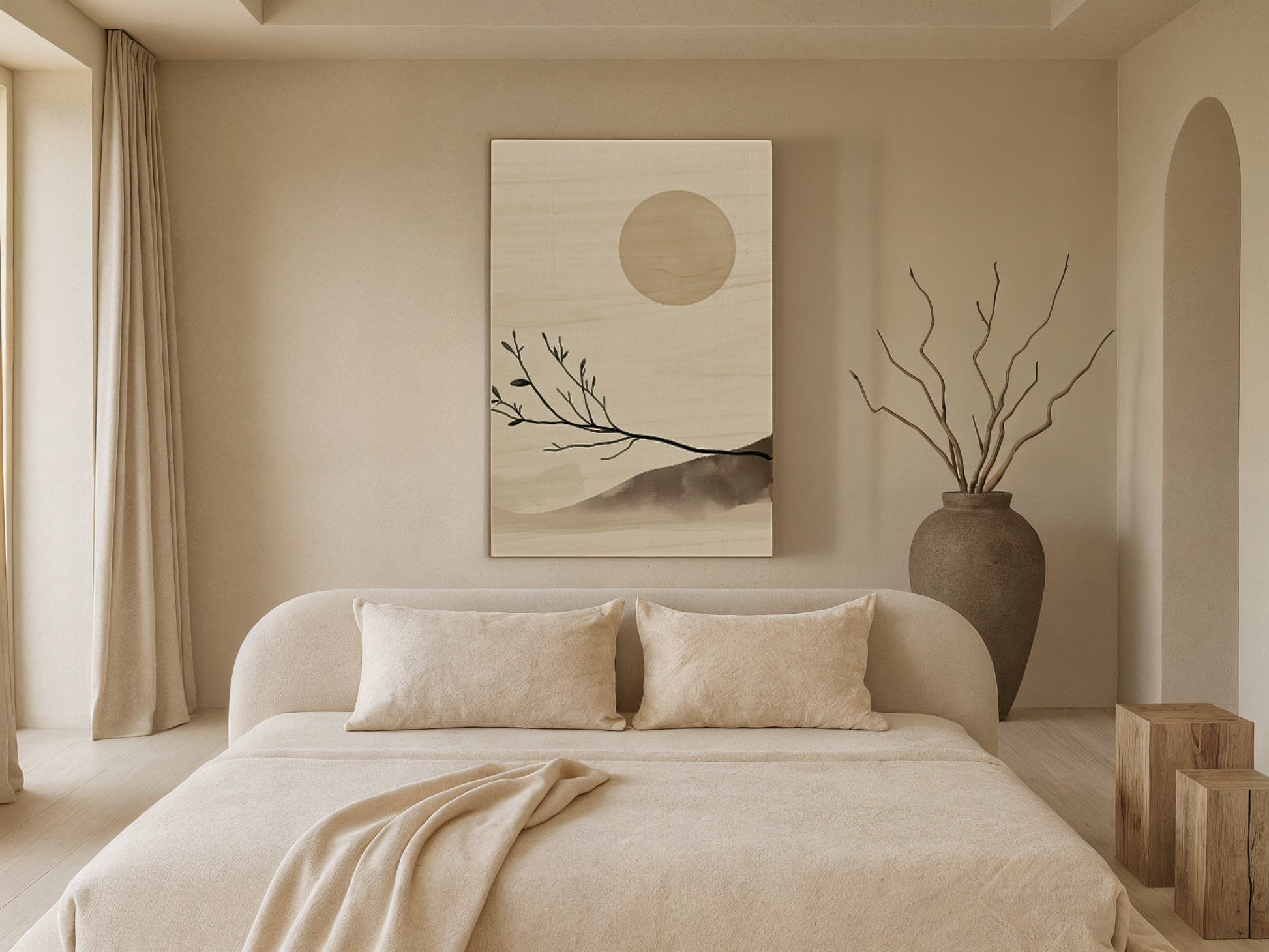 Our wall art is printed on FSC-certified birch wood, carefully selected for its natural grain and subtle warmth. Each piece offers a matte, rustic finish that brings depth and organic texture to your space.
