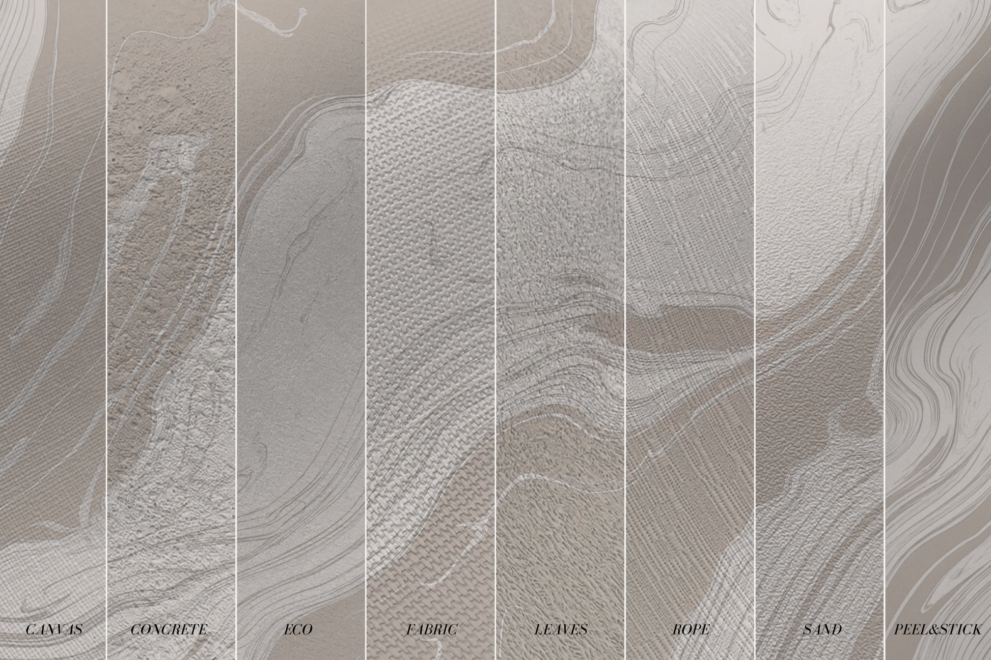 Inspired by the organic movement of tides meeting stone, this Japandi wallpaper captures the softness of water-carved marble. Each delicate swirl reflects nature’s quiet strength—fluid, calm, and grounded. A space to breathe, a space to be.
