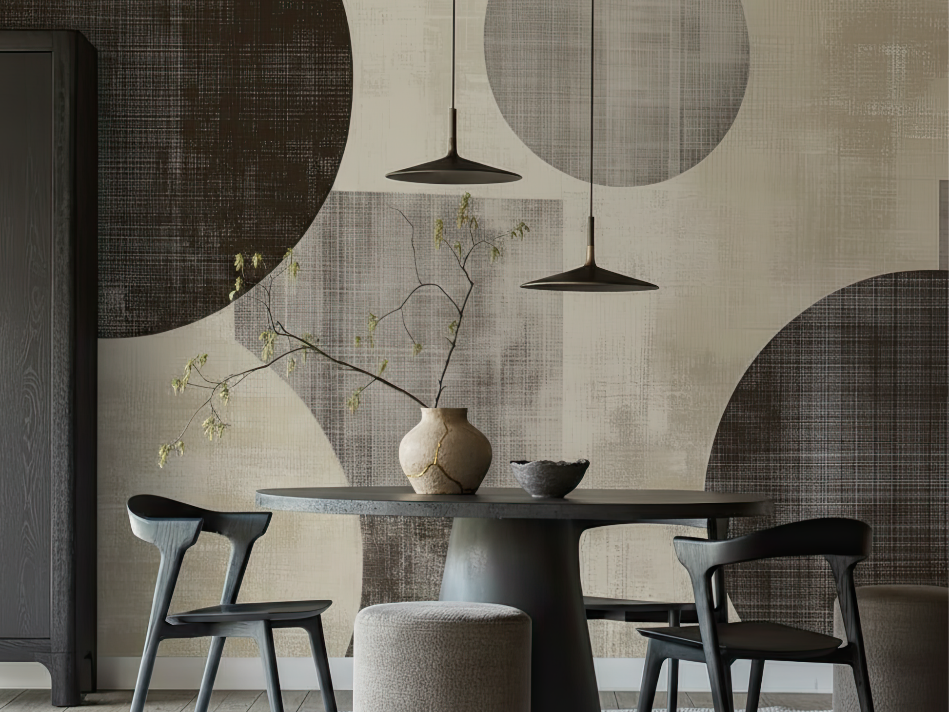 Inspired by aged textiles and the interplay of light and shadow, this Japandi wallpaper weaves geometric shapes with gentle textures and muted contrast. A reflection of depth, softness, and understated balance. A space to settle. A space to be.