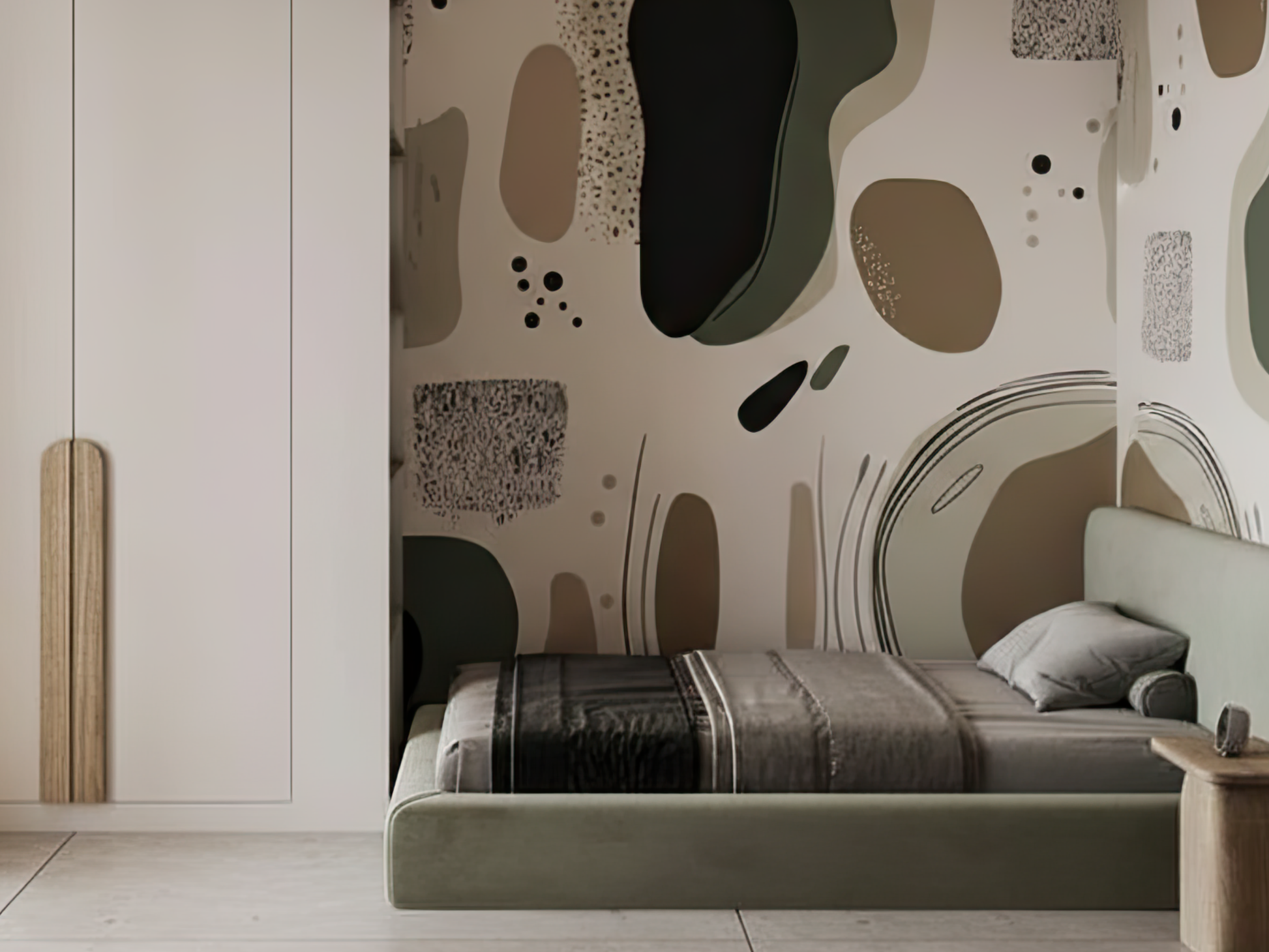 Inspired by the natural markings of bamboo groves and the playful texture of speckled earth, this Japandi wallpaper brings together fluid form and organic spontaneity. A serene rhythm expressed in earthy tones and soft contrasts. A space to move gently. A space to be.